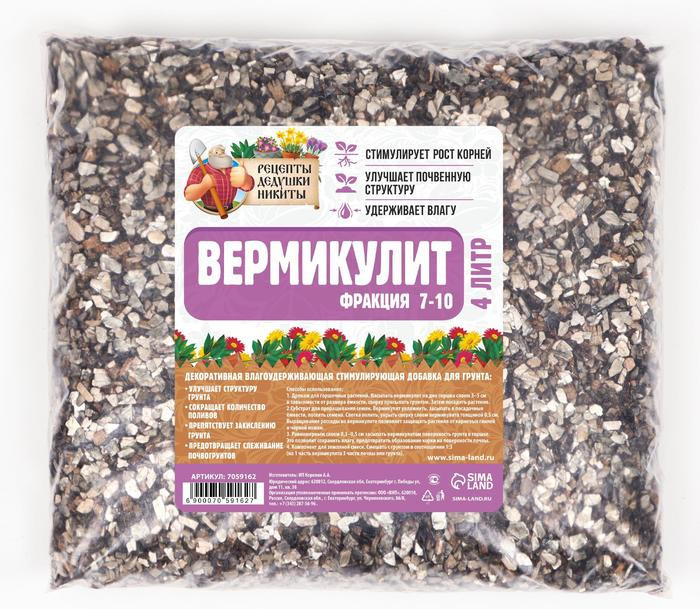 В данный момент этот товар отсутствует в продаже. Возможно, у нас найдется аналогичный или похожий товар здесь. Декоративная, аэрирующая, влагоудерживающая добавка для почвогрунтов. А также, вермикулит используется в качестве кормовой добавки для крупного рогатого скота и птицы, за счет чего снижается заболеваемость кишечника, улучшается выведение токсинов из организма. Повышается содержание гемоглобина; количество эритроцитов; уровень белка, кальция и фосфата.