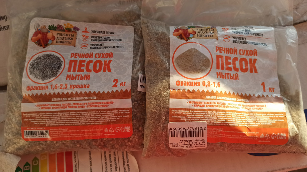 Перемешиваю с универсальным грунтом. Жаль что в нашей местности морской песок, приходится покупать песок)). Пришел хорошо упакованный.