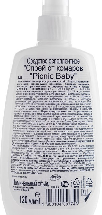 Picnic Спрей от комаров, мокрецов, москитов детский-25% +41