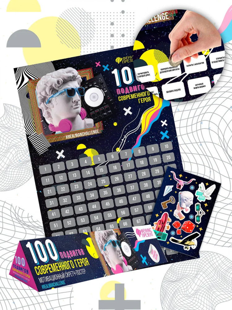 Феникс Презент Постер со скретч-слоем «100 подвигов современного героя»-20% +162