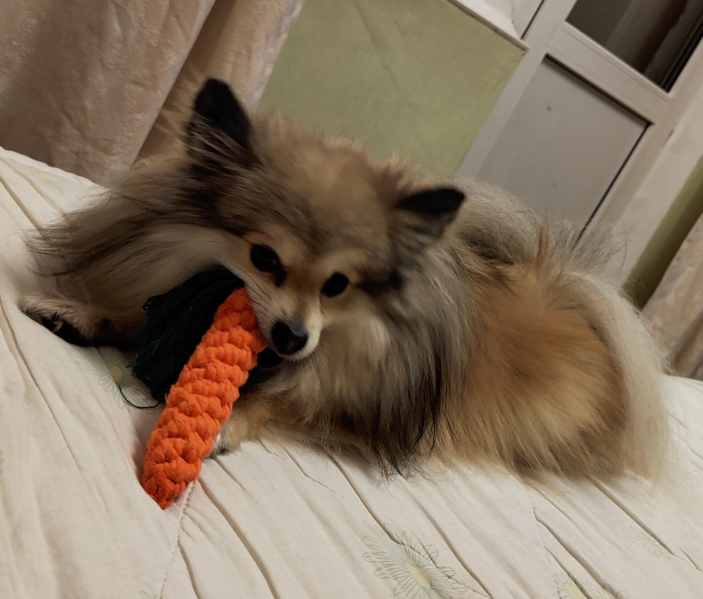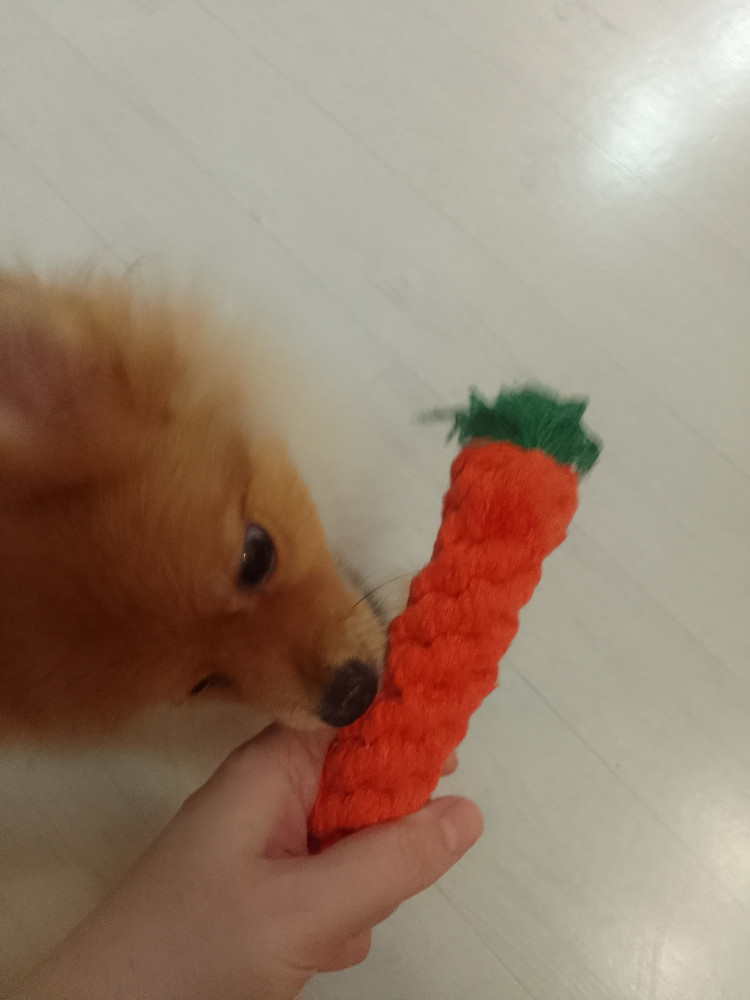 шпиц в восторге, с нетерпением ждал, когда открою посылку. играл с морковкой весь вечер.