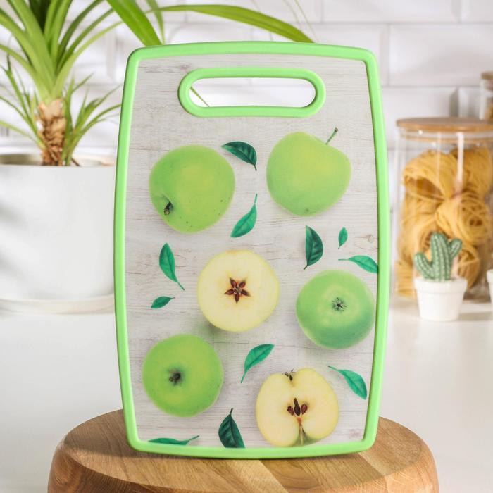 Доляна Доска разделочная «Зелёные яблоки»-25% +51 небольшая приятный рисунок удобная не тонкая