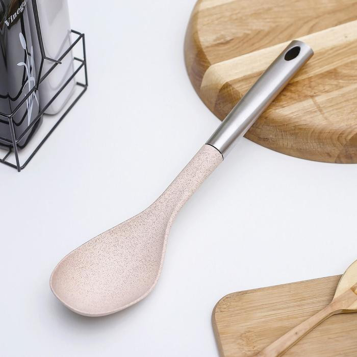 Кухонная ложка станет незаменимым помощником как во время повседневной готовки, так и при создании кулинарных шедевров для торжественных событий. Изделие подойдёт для помешивания и снятия пробы с готовящихся блюд, а также для раздачи уже готового угощения.