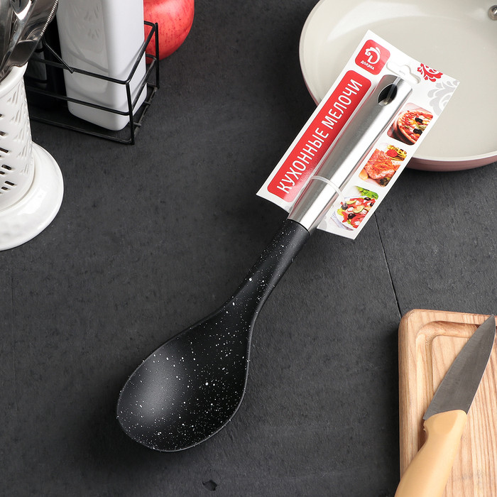 Кухонная ложка станет незаменимым помощником как во время повседневной готовки, так и при создании кулинарных шедевров для торжественных событий. Изделие подойдёт для помешивания и снятия пробы с готовящихся блюд, а также для раздачи уже готового угощения.