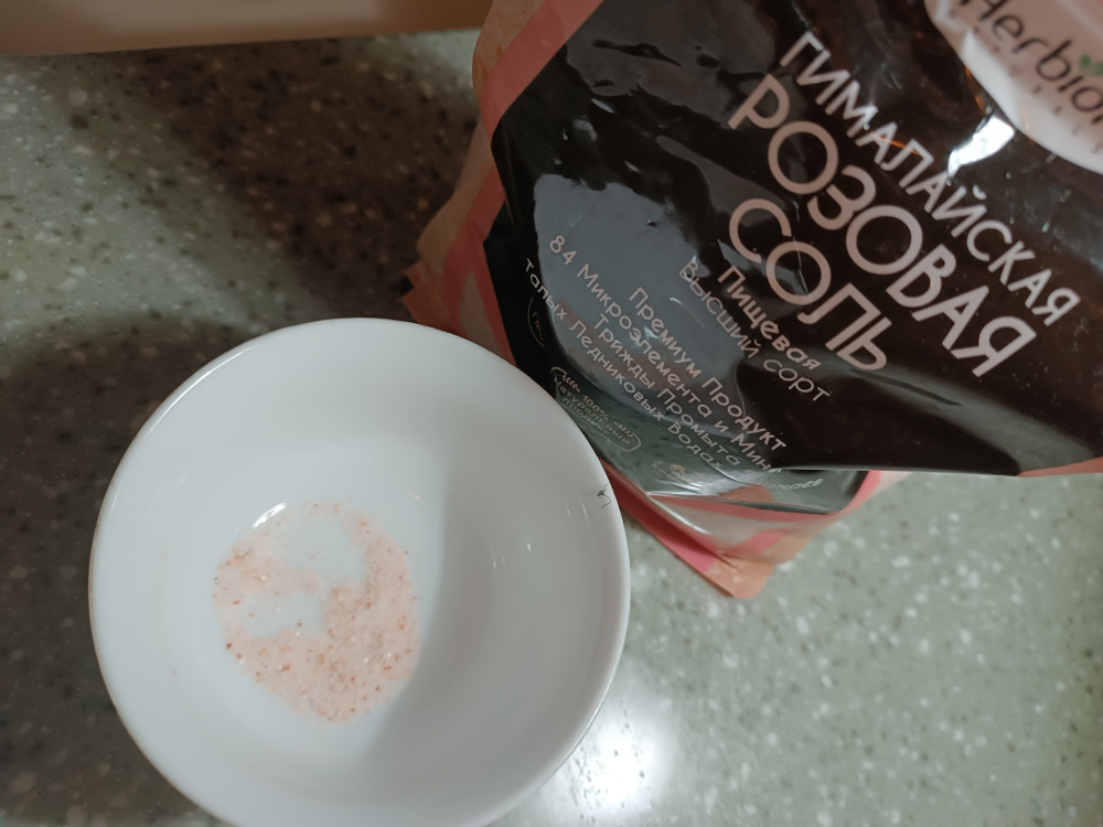 в целом соль солёная, посторонних запахов нет, но при растворении в воде окрашивает ее в розоватый цвет, вода становится мутной и осадок на дне розового цвета, что Настоящая гималайская соль не делает, т.е.вода должна оставаться прозрачной. Принесли ее и я сразу проверила, заказала потому что все отзывы были положительные, а теперь сомнения появились насчёт безвредности красителя