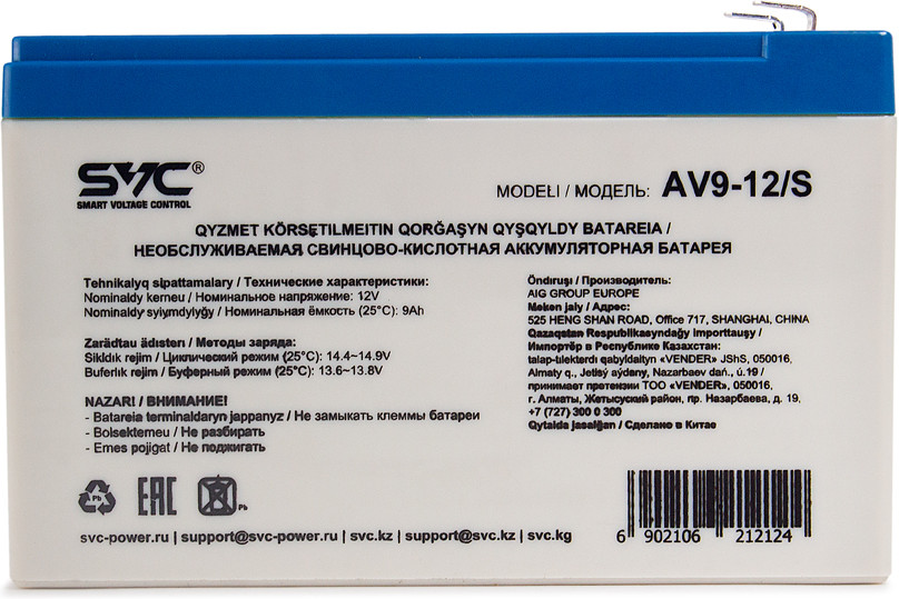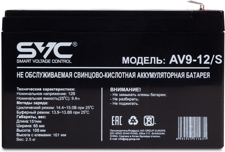 SVC Батарея аккумуляторная AV9-12/S+312 соответствие работает емкость напряжение