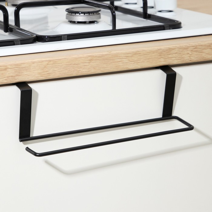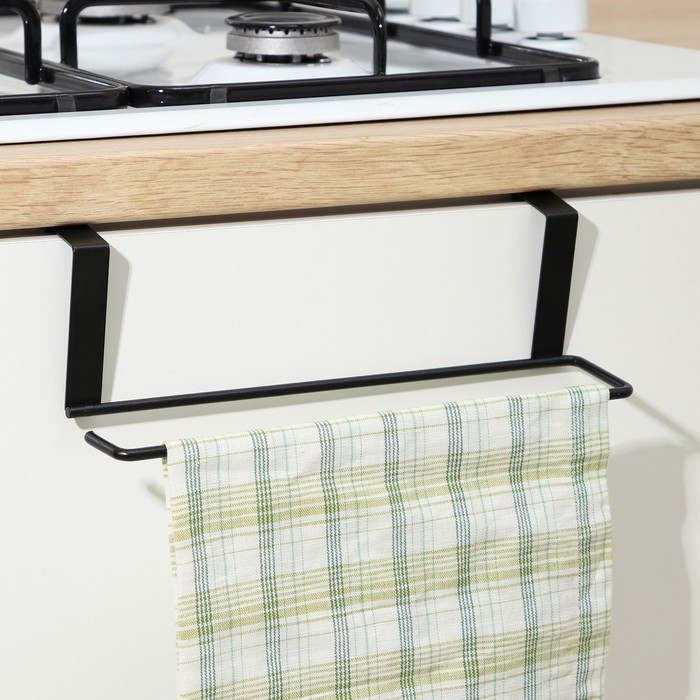 Держатель для полотенец на дверцу впишется в интерьер каждой кухни. Это оригинальный и функциональный предмет, а также незаменимый помощник в организации пространства на кухне и в ванной комнате. Этот подвесной держатель для кухонных полотенец выполнен из металла.