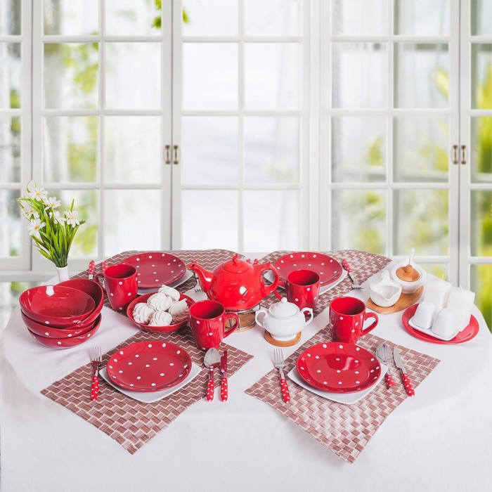 Доляна Кружка «Красный горох»+71 тяжёлая размазанные горошины нечёткий рисунок цвет отличается