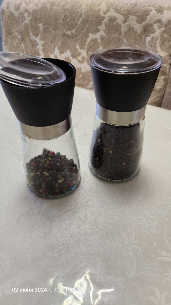 Удобная мельница с прощрачной крышкой.Удобно насыпать перец горошком,мелет отлично.Заказала 2 шт для черного перца и смеси из 5 перцев.
