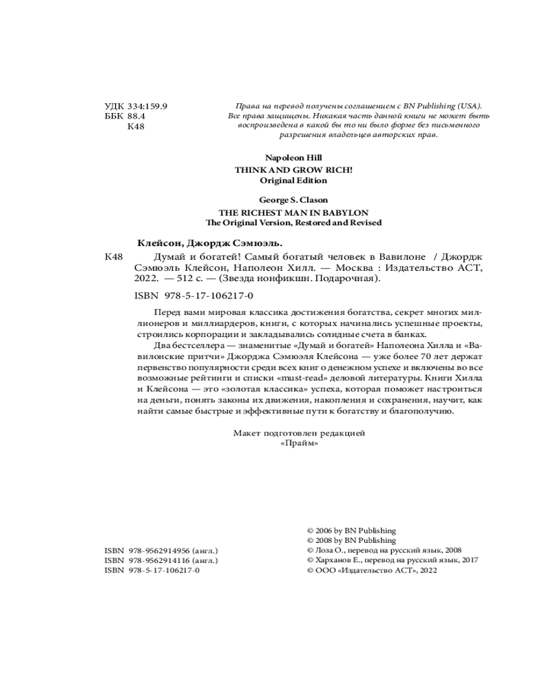 Самый богатый человек в Вавилоне. Думай и богатейНаполеон Хилл, Джордж Сэмюэль Клейсон +306