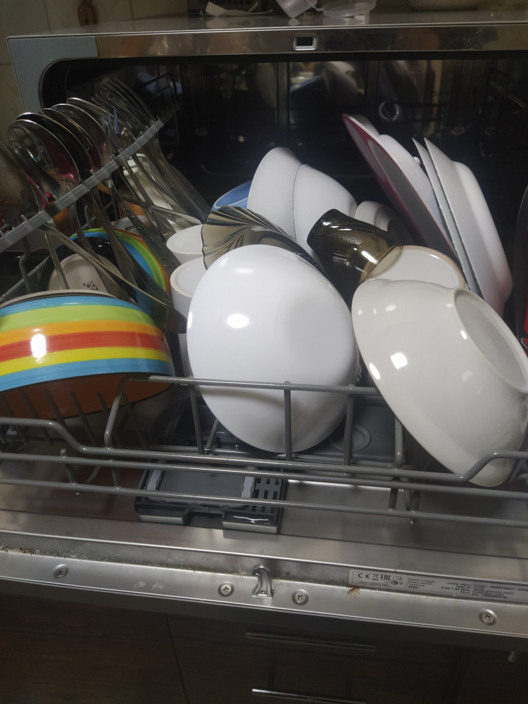 Хорошее экономичное средство. На фотографии видно, что есть немного пены, и это плюс. Нет запаха химии. Самим можно регулировать количество средства. Отмывает хорошо ( конечно от режима программы многое зависит), без разводов. Ополаскивателем не пользуюсь, пусть лучше чистая посуда будет, чем с химией, пусть и с блеском. Средство хватит надолго. Твердая пятёрка.
