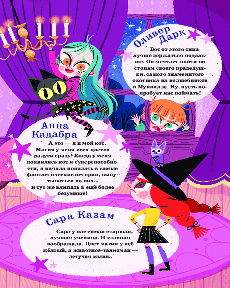 Серия-бестселлер для поклонников Изадоры Мун! Историю об Анне Кадабре любят более 250 000 детей по всему миру! Главный посыл этой книги — с настоящими друзьями легко побороть любые страхи. С Анной Кадаброй очень весело проводить время: она постоянно попадает в нелепые ситуации. История дополнена забавными яркими иллюстрациями, картой городка Мунвилля и портретами героев. |