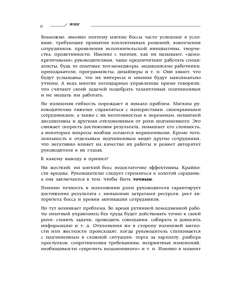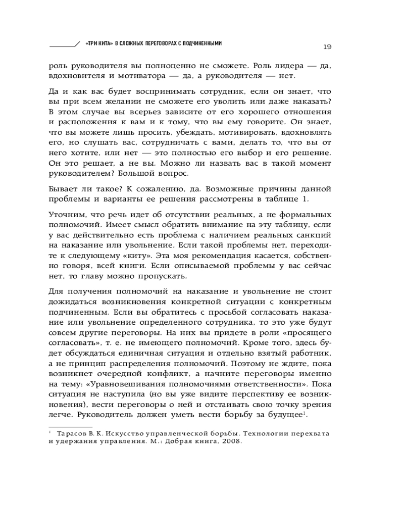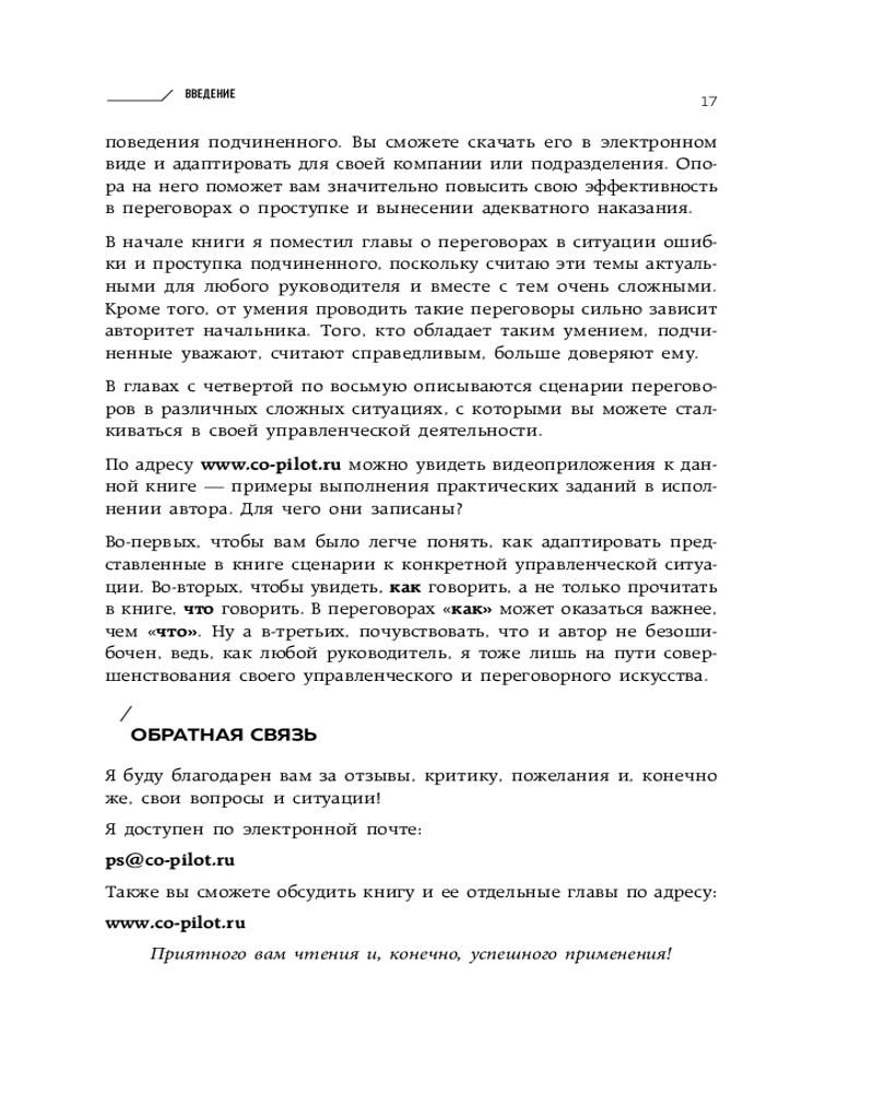 Книга супер. Книг по переговорам написано множество. Но, к сожалению, нет таких, которые напрямую касались бы выстраивания верной коммуникации между начальником и подчиненным. Книга как раз об этом говорится.