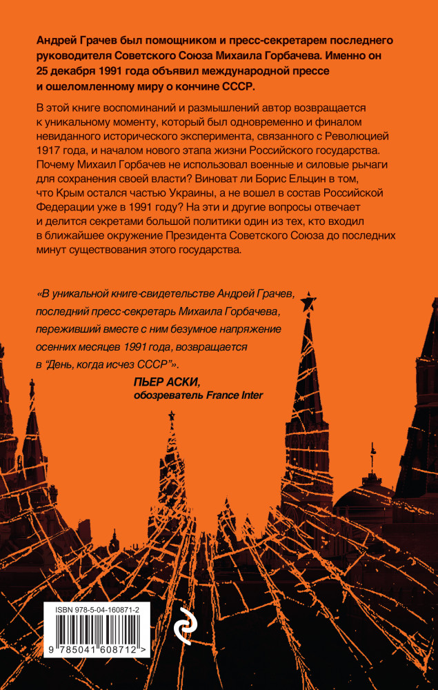 Прошло три десятилетия — своей книгой-некрологом Андрей Серафимович Грачев окончательно провожает СССР в историю и предлагает взглянуть в будущее. Без страха, но и без иллюзий. |