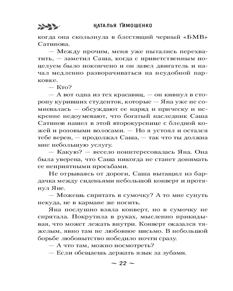 Романы Натальи Тимошенко пропитаны мистикой и тайной. В них оживают лесные чудовища, посланники из мира мертвых и старые добрые домовые. |