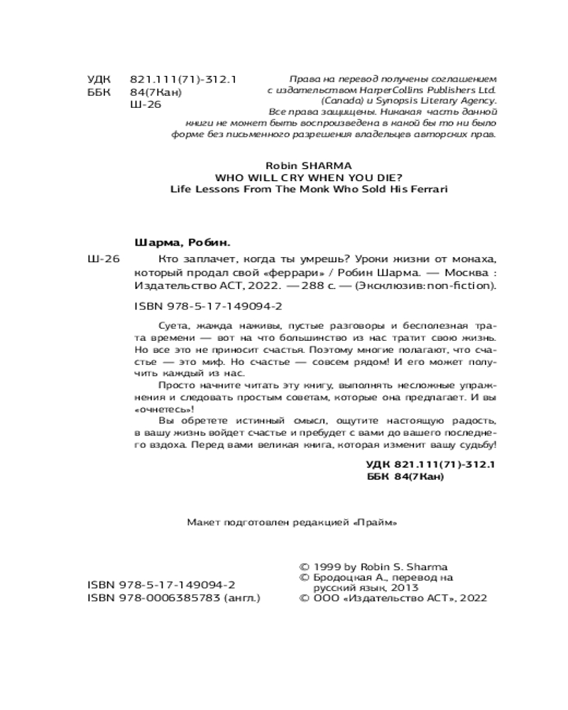 Кто заплачет, когда ты умрешь? Уроки жизни от монаха, который продал свой «феррари»+96