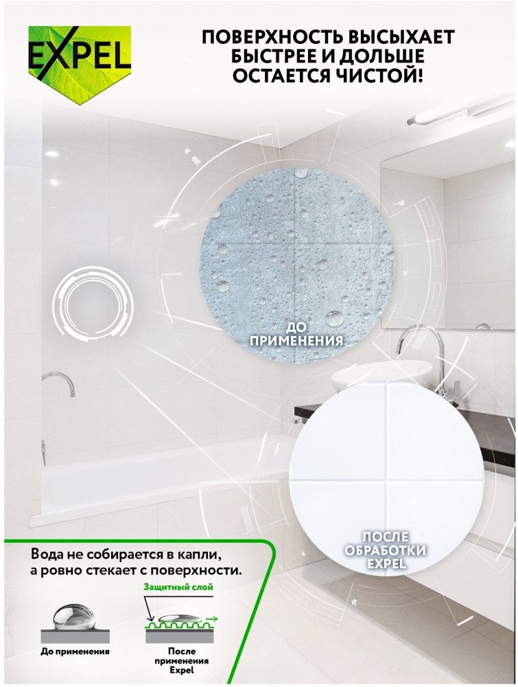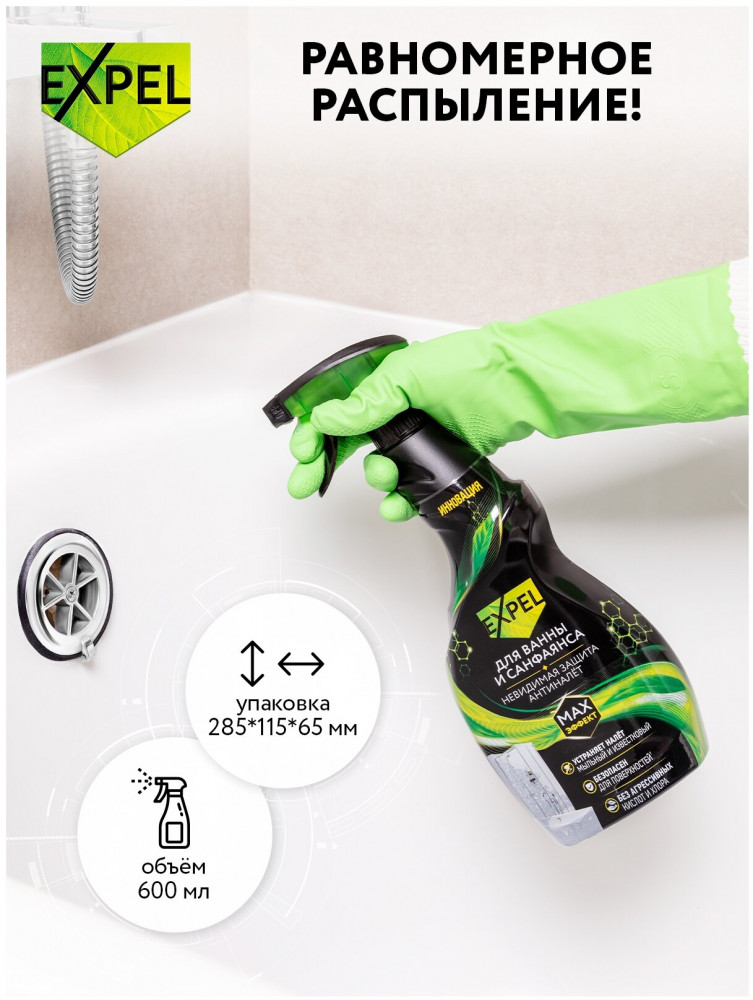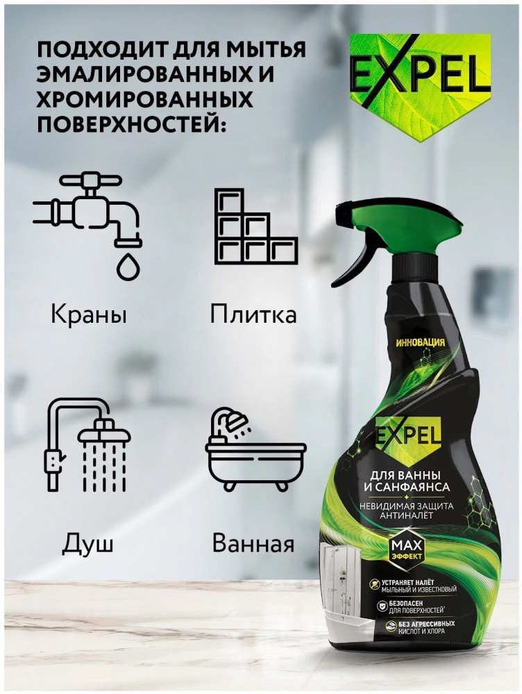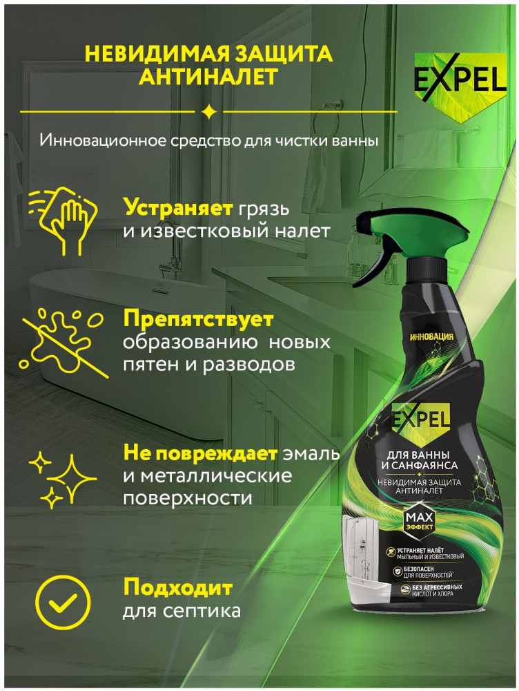 EXPEL Спрей для ванны и санфаянса «Антиналет»-20% +129 очищает поверхности очищает швы придаёт блеск быстрая очистка слабая эффективность