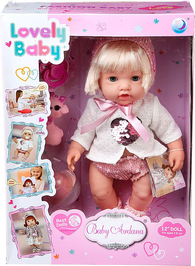 ABtoys Кукла «Ardana»В данный момент этот товар отсутствует в продаже. Возможно, у нас найдется аналогичный или похожий товар здесь. Серия: Baby Ardana Игра в «Дочки-матери» — важная и неотъемлемая часть детства каждой девочки. Играя с куклами и пупсами, маленькая леди развивает коммуникативные способности и навыки заботы о близких. Эта очаровательная куколка-пупс выглядит как настоящий малыш. Она умеет пить воду и писать. У нее есть соска, бутылочка, любимая игрушка «Кошечка». Куколка-блондинка одета в белую кофточку с сердечком из пайеток, ажурные шортики, розовую шапочку. Глаза у куклы закрываются. Кукла упакована в подарочную красивую коробку. |