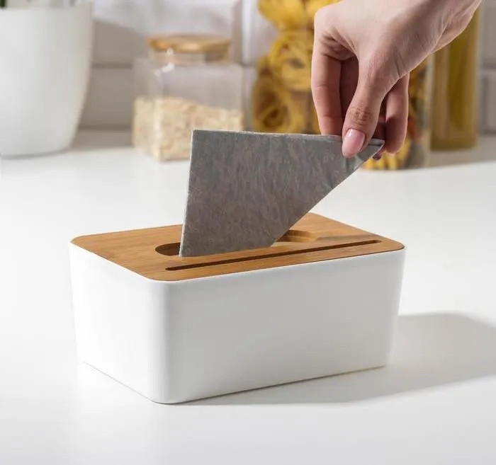Крышку надо постоянно приклеивать скотчем, потому что, когда берешь салфетку, крышка тоже поднимается