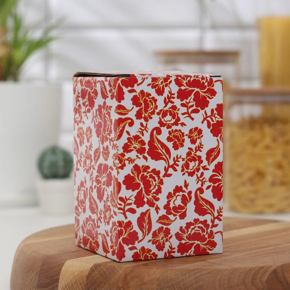очень красивый дизайн, все лаконично, качественное исполнение, без постороннего запаха. Для конфет, орехов немного маловата, наверное, но для сахара в самый раз.
