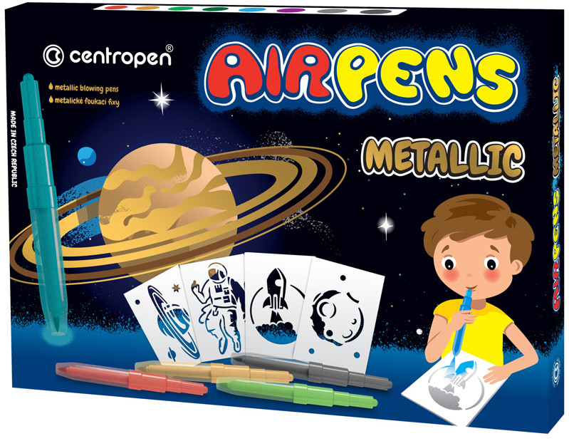 Centrum Фломастеры воздушные «Metallic»В данный момент этот товар отсутствует в продаже. Возможно, у нас найдется аналогичный или похожий товар здесь. Воздушные фломастеры 8 цветов с эффектом металлик. Можно использовать как на белой, так и на темной бумаге. В комплект входит 8 трафаретов с космической тематикой и 10 листов формата А4 черного цвета. Легко смываются и отстирываются. Безопасны для здоровья. |