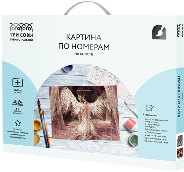 • холст на деревянном подрамнике 40×50 с нанесенным контуром, пронумерованный в соответствии с номерами красок. Контур под раскрашивание нанесен в том числе и на торцы подрамника, что позволяет разместить готовую работу на стене не обрамляя в багет или раму. Технология точной разбивки сюжета картины на разные цветовые оттенки гарантируют правильность исполнения полотна;