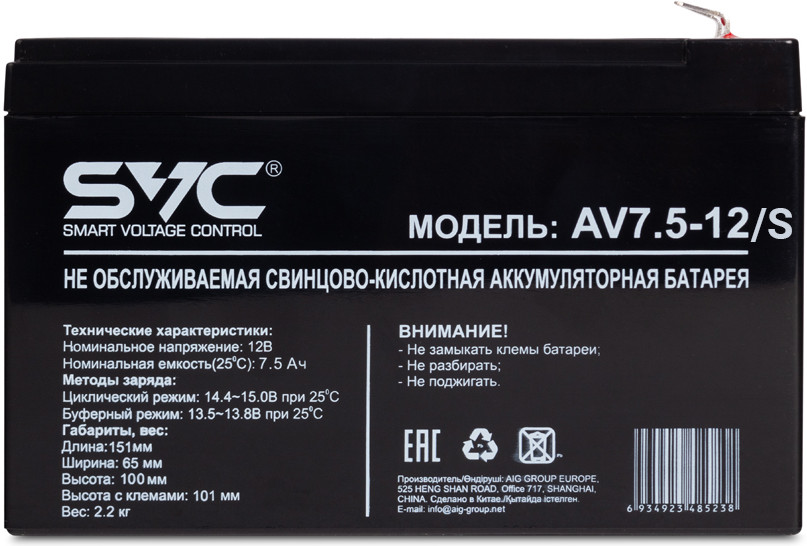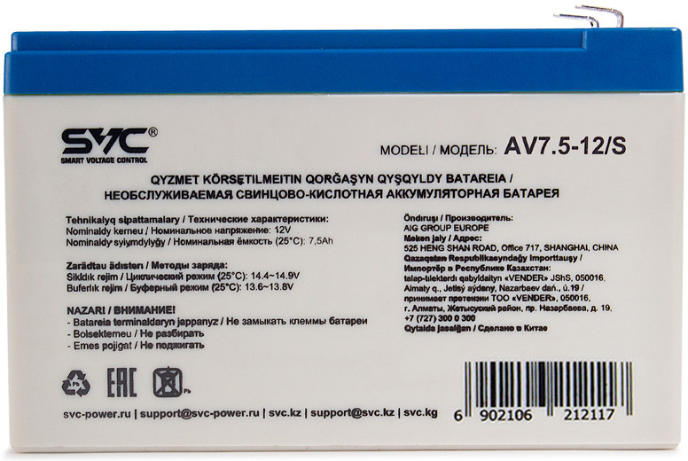 SVC Батарея аккумуляторная AV-7.5-12/S+288