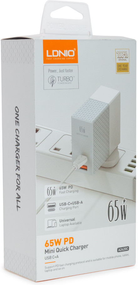 Ldnio Зарядное устройство A2620CВ данный момент этот товар отсутствует в продаже. Возможно, у нас найдется аналогичный или похожий товар здесь. По настоящему универсальное зарядное устройство Ldnio с мощной выходной мощностью 65W на разъем USB Type-C подходит не только для зарядки мобильного телефона и других схожих аксессуаров, но и для ноутбуков. Для менее востребованных повседневных аксессуаров отлично подойдёт второй классический разъем USB A. Помимо этого устройством имеет широкую совместимость благодаря встроенным протоколам быстрой зарядки Power Delivery (USB -C) и QC3.0 Fast Charger обеспечивает быструю и плавную, а главное безопасную зарядку для вашего устройства. |