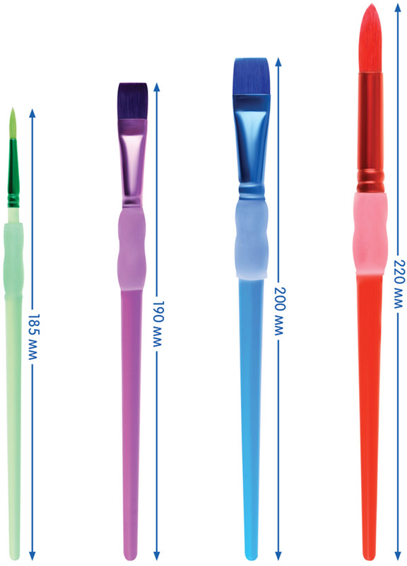 💳 Оплатить за товар можно при получении 🇰🇿 Есть бесплатная доставка по Казахстану от 1 дня 🎁 Копите бонусы с каждой покупки Набор кистей для рисования «Мульти-Пульти» предназначен для детей с начальным и средним уровнем подготовки. Кисти изготовлены из синтетического волоса, окрашенного в один цвет с ручкой и обоймой. Используемый синтетический волос обладает капиллярным эффектом, поэтому кисть можно использовать в том числе для акварельных красок. Силиконовый грип в месте захвата минимизирует скольжение пальцев и значительно повышает удобство работы с кистью. Прозрачные пластиковые ручки не боятся воды и легко моются. Кисти имеют двойной обжим обоймы и надежное клеевое скрепление с корпусом ручки. |