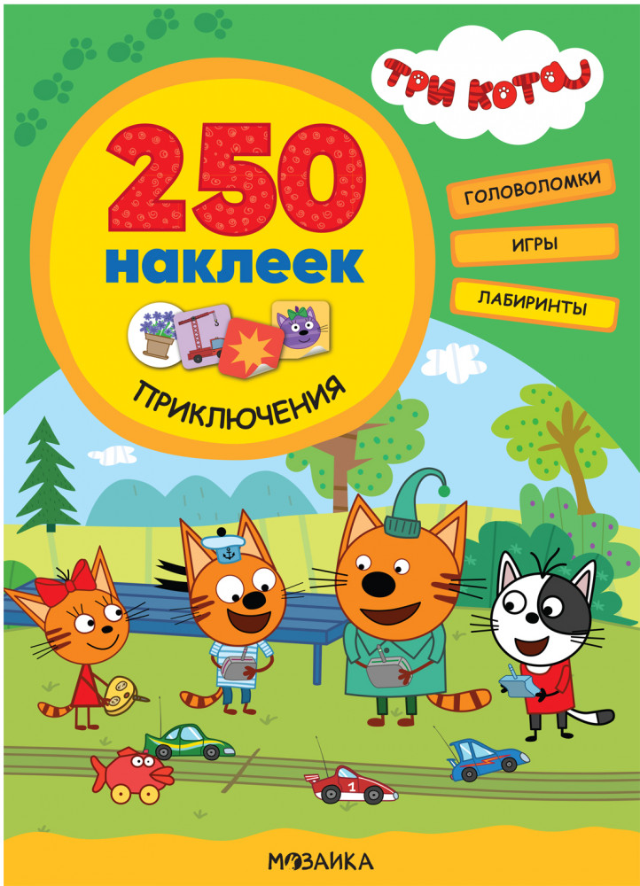 Три кота. 250 наклеек. ПриключенияВ данный момент этот товар отсутствует в продаже. Возможно, у нас найдется аналогичный или похожий товар здесь. Большой формат, много заданий и наклеек и любимые герои мультсериала «Три кота» — вот идеальное сочетание, которое надолго увлечет любого ребенка. На каждой странице книги «Времена года» серии «Три кота. 250 наклеек» ребенок найдет интересные задания на тему сезонных изменений; все их нужно будет решить с помощью наклеек. Пусть это не так просто, но очень увлекательно! А приклеив все 250 наклеек, можно проверить себя, в конце спрятаны ответы на все головоломки. Логика, внимание, память — всестороннее развитие мышления вместе с Коржиком, Карамелькой и Компотом. Миу-миу-миу! |