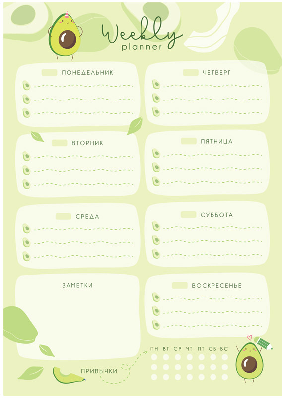Meshu Планер на неделю на склейке «Avocado»В данный момент этот товар отсутствует в продаже. Возможно, у нас найдется аналогичный или похожий товар здесь. Серия: Avocado Планер на неделю. Бумага офсетная с оригинальным дизайном. Недатированный. На склейке. Индивидуальная упаковка. Стильный дизайн такого планера впишется в любой интерьер и может стать хорошим подарком для родственников, друзей или коллег. |