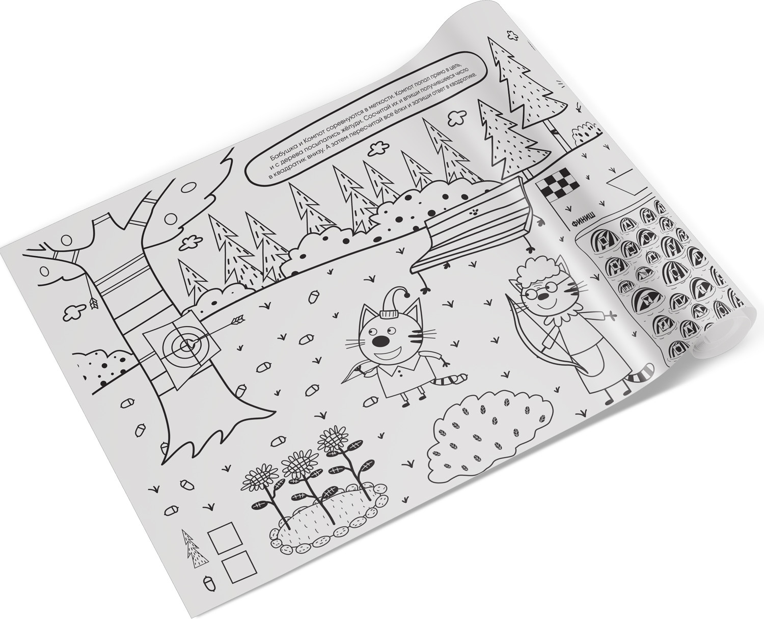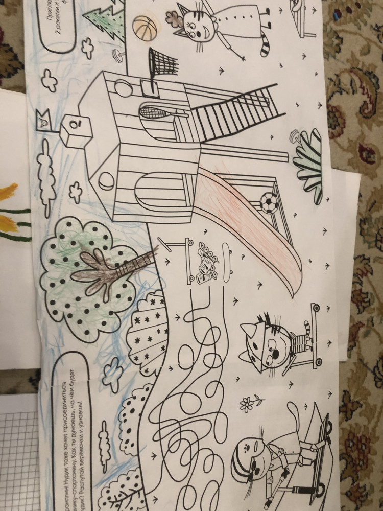 Три кота. Раскраска-рулон. Весёлый спортВ данный момент этот товар отсутствует в продаже. Возможно, у нас найдется аналогичный или похожий товар здесь. Раскраска-рулон «Веселый спорт» — это очень длинная раскраска (целых 2 метра!) с любимыми героями популярного мультсериала «Три кота». Котята, их друзья и родные обожают разные виды спорта, и они приготовили занимательные задания на логику, внимательность, счет и мышление. Раскрашивайте и выполняйте задания — с тремя котами скучно точно не будет! |