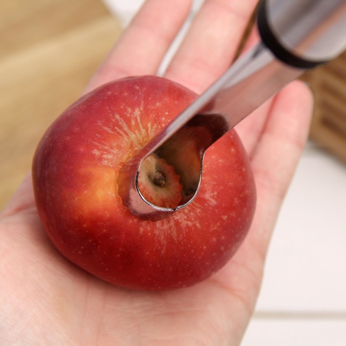 💳 Оплатить за товар можно при получении 🇰🇿 Есть бесплатная доставка по Казахстану от 1 дня 🎁 Копите бонусы с каждой покупки Серия: Помощник Нож для удаления сердцевины — кухонный аксессуар, специально для быстрого и равномерного удаления сердцевины фруктов. Нож для удаления сердцевины оставляет аккуратный вырез в форме цилиндра, который удобно заполнять начинкой. Фрукт с удаленной ножом сердцевиной удобно нарезать для дальнейшей сушки и использования в выпечке. |