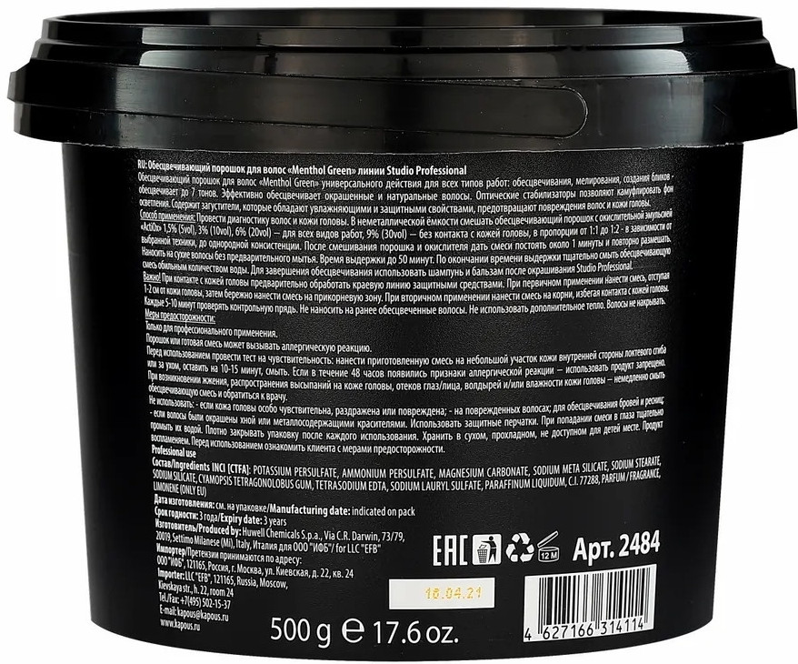Kapous Professional Порошок для волос обесцвечивающий «Menthol green»