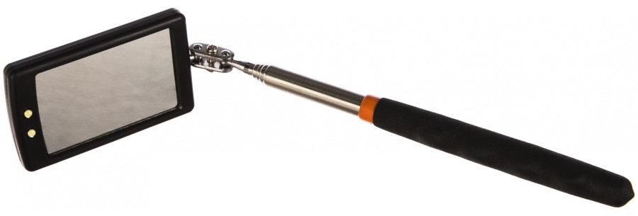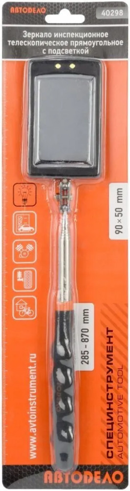 АвтоДело Зеркало телескопическоеВ данный момент этот товар отсутствует в продаже. Возможно, у нас найдется аналогичный или похожий товар здесь. Зеркало инспекционное предназначено для визуального контроля узлов и агрегатов автомобиля, находящихся в труднодоступных местах. Снабжено отражающим элементом. Отражающий элемент закреплён на телескопической штанге, изготовленной из нержавеющей стали. Рукоятка приспособления имеет резиновое покрытие, повышающее удобство использования и предотвращающее проскальзывание ладони. Зеркальный элемент имеет шарнирное соединение с телескопической штангой, что позволяет изменять угол наклона. Для удобства применения в условиях плохой освещённости оснащено светодиодной подсветкой, встроенной в корпус отражающего элемента. В комплект поставки входят элементы питания типа AG13/LR44 с напряжением 1,5В. |