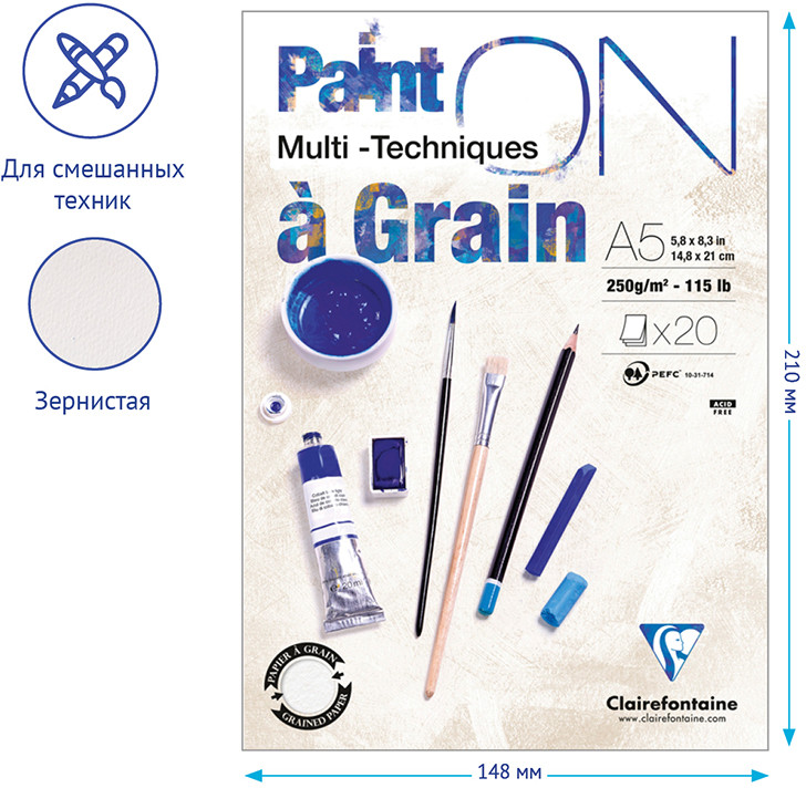 💳 Оплатить за товар можно при получении 🇰🇿 Есть бесплатная доставка по Казахстану от 1 дня 🎁 Копите бонусы с каждой покупки Серия: Paint On Альбом для смешанных техник «Paint’ON» — лучшая линейка от французского производителя «Clairefontaine». Качество и плотность делают бумагу устойчивой к царапинам, позволяют наносить материал в несколько слоев. Сверхбелая бумага имеет разную структуру с разных сторон листа. Одна сторона гладкая — предназначена для точных рисунков. Другая сторона листа имеет легкую зернистую текстуру, что придает рисунку характер. Подходит для работы карандашом, углем, пастелью, фломастерами, маркерами, тушью, акрилом и гуашью. Вид крепления — склейка, позволяет легко отделить лист с готовым рисунком. |