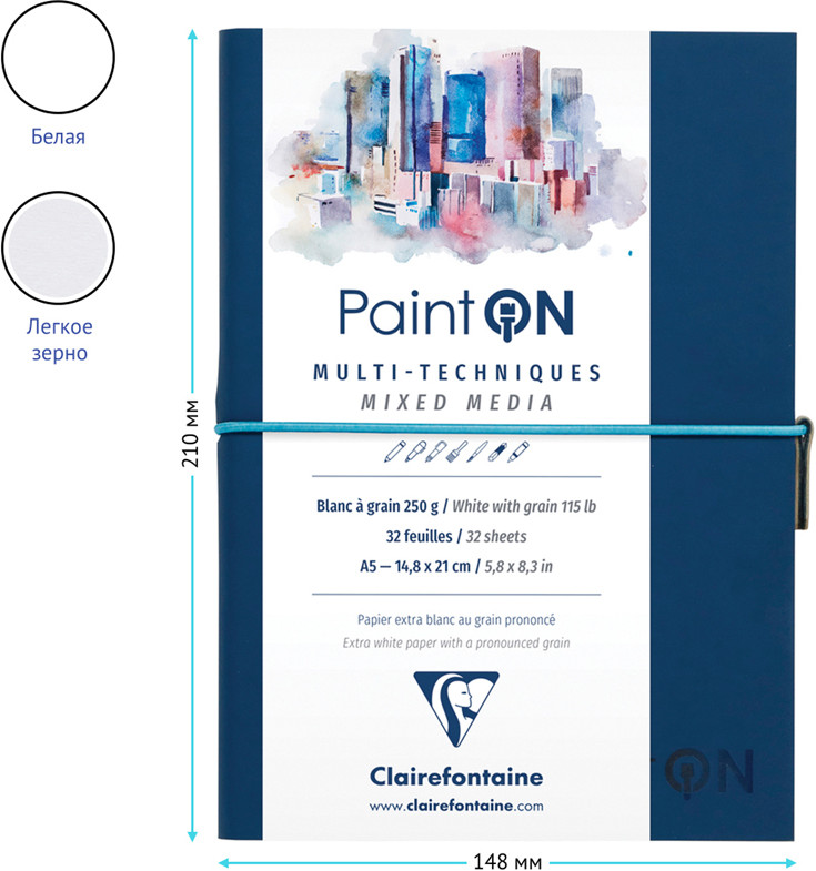 💳 Оплатить за товар можно при получении 🇰🇿 Есть бесплатная доставка по Казахстану от 1 дня 🎁 Копите бонусы с каждой покупки Серия: Paint On Скетчбук «Clairefontaine» для смешанных техник на сшивке «Paint’ON» — продукт для начинающих художников, городских скетчеров и дизайнеров. Скетчбук состоит из 32 листов и имеет блок плотностью 250 г/м2, тип скрепления — сшивка. Формат позволяет взять скетчбук с собой и делать зарисовки на улице и в путешествии. Мягкая обложка из кожзама, фиксируется резинкой. |