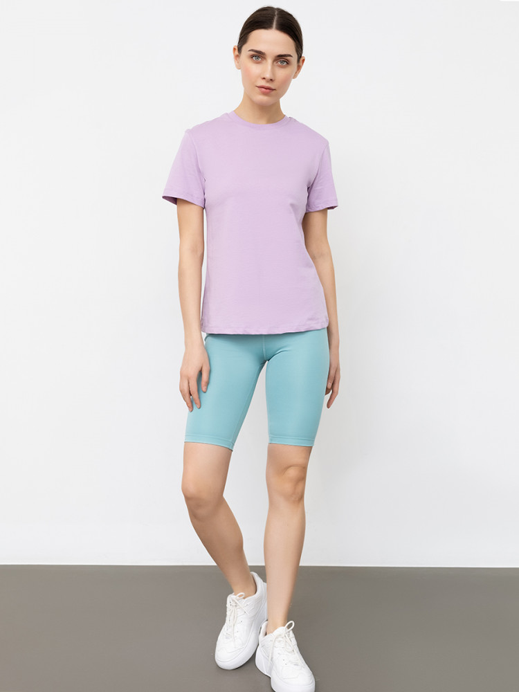 Хлопковая однотонная футболка из кулирного полотна. Силуэт свободный. Горловина круглой формы. Рукава короткие. Отличный вариант не только для спортивных занятий, но и для домашнего ношения, сна и даже прогулок.
