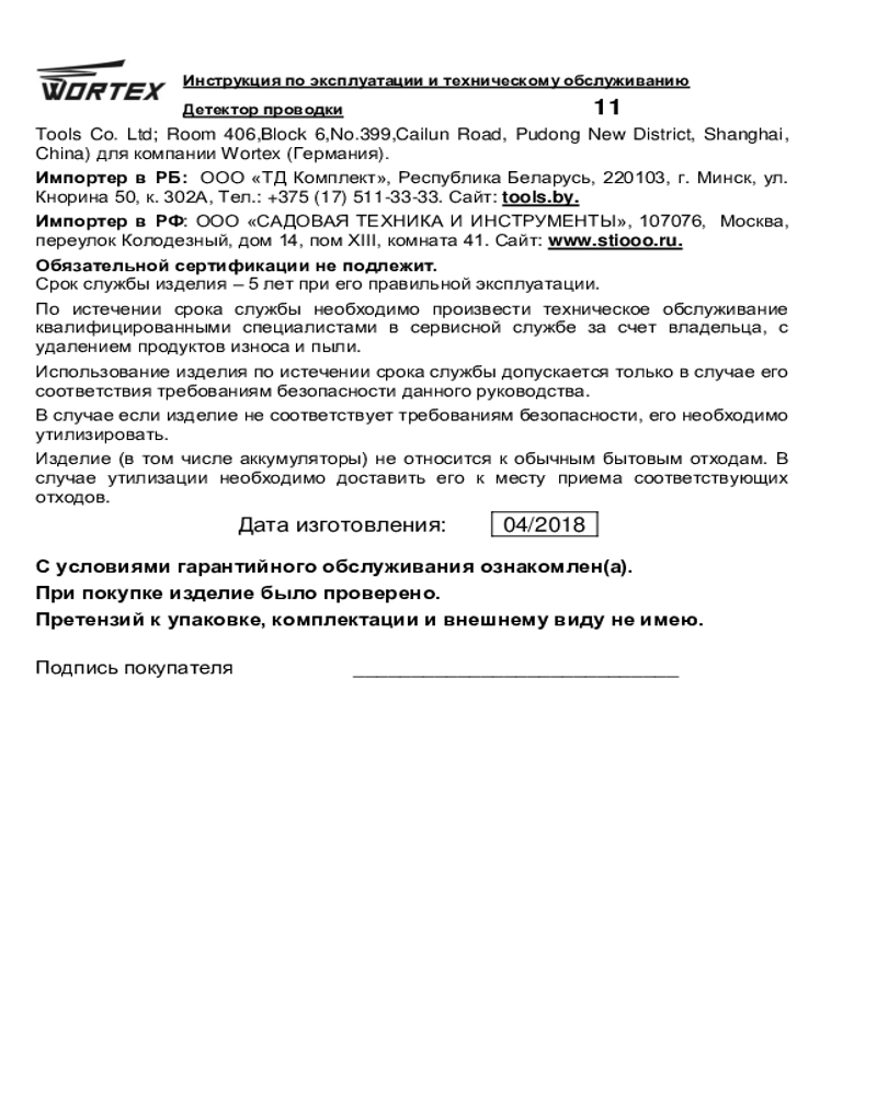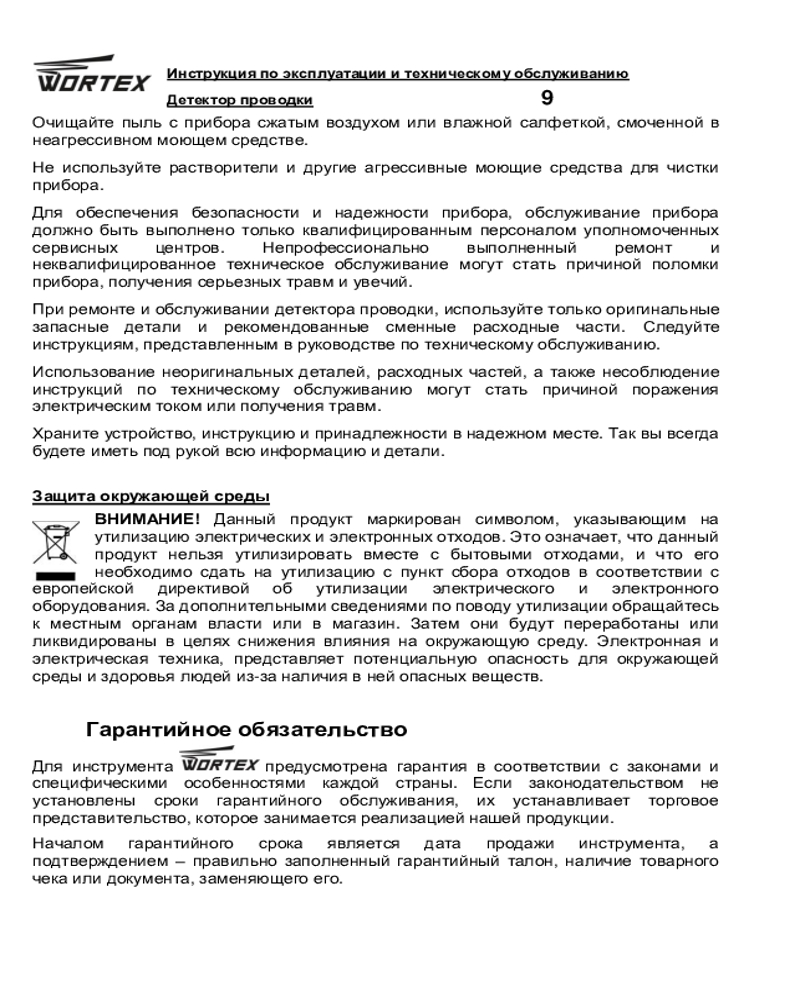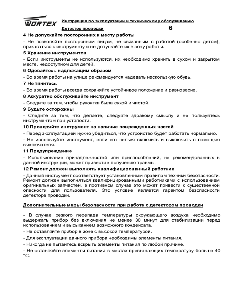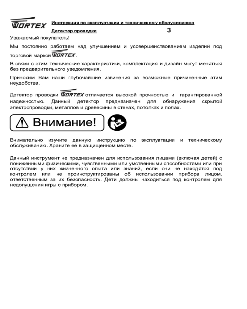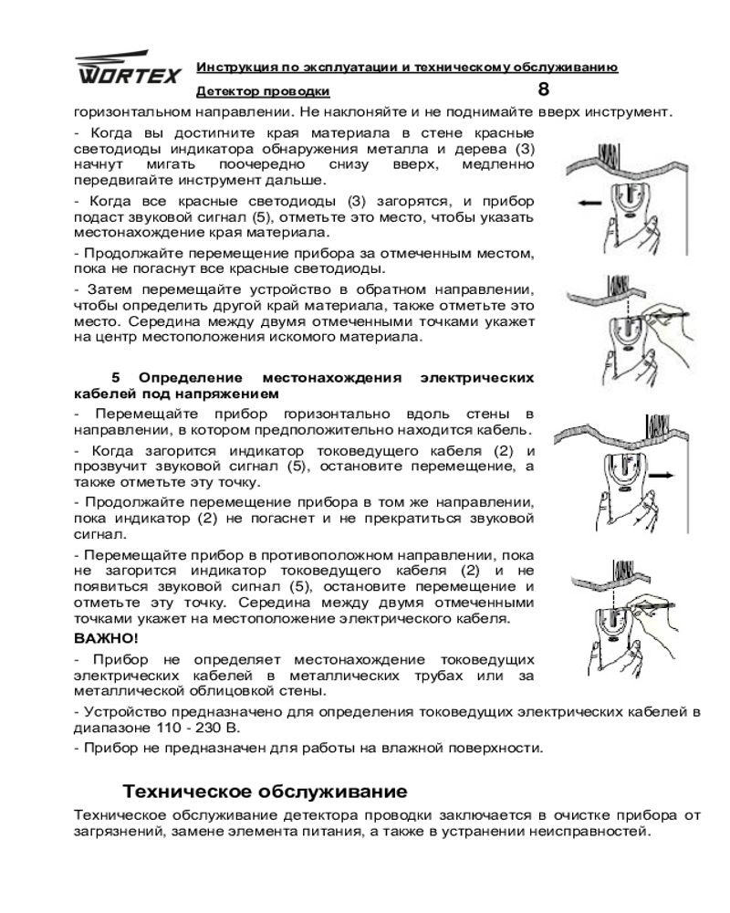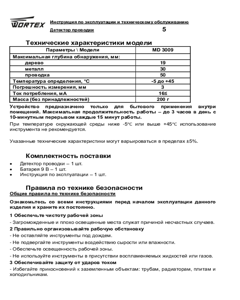 WORTEX Детектор проводки Wortex MD 3009+272