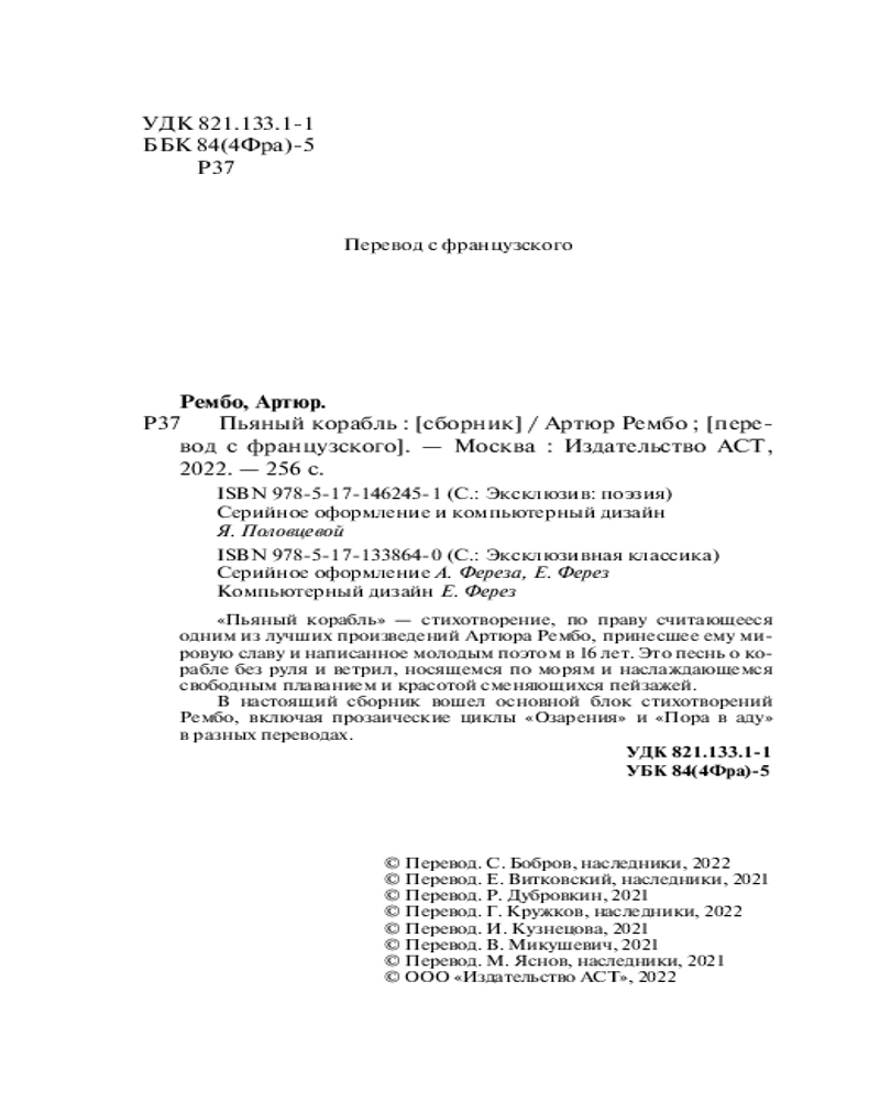 💳 Оплатить за товар можно при получении 🇰🇿 Есть бесплатная доставка по Казахстану от 1 дня 🎁 Копите бонусы с каждой покупки Серия: Эксклюзив: поэзия Артюр Рембо (1854-1891) — французский поэт, друг Поля Верлена, участник восстания Парижской коммуны, про которого Виктор Гюго говорил: «Это Шекспир-дитя». Рембо писал всего четыре года из прожитых на свете 37, но за это недолгое время поэт создал удивительные стихи — воплощение свободы и бунтарства. |