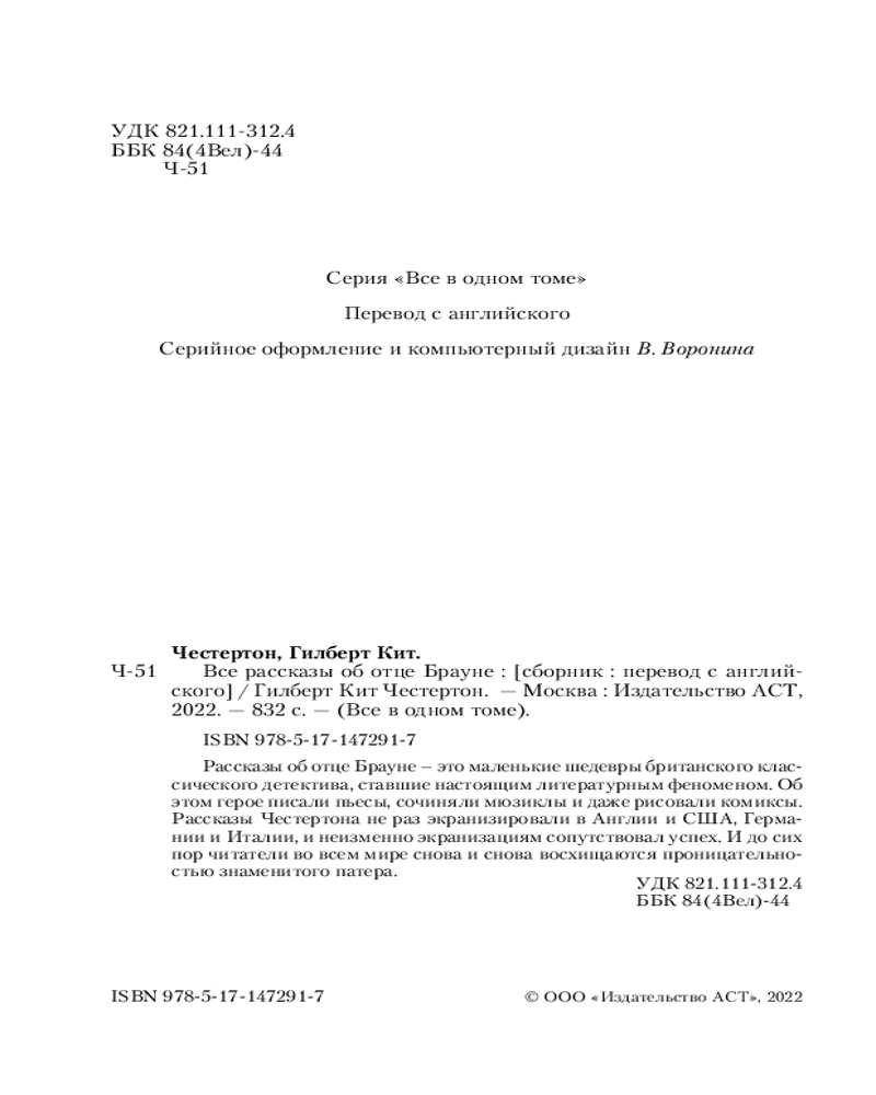 Все увлекательные расследования отца Брауна в одном томе, что очень экономит и финансы, и место в книжном шкафу
