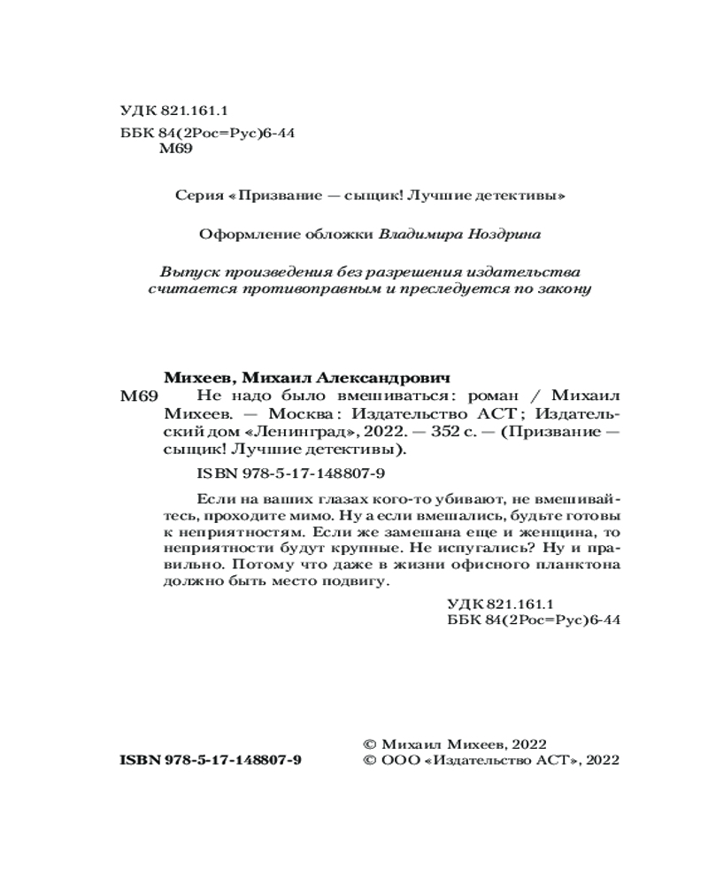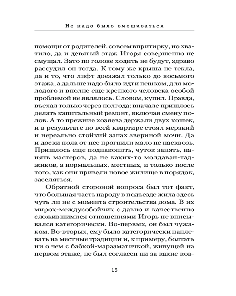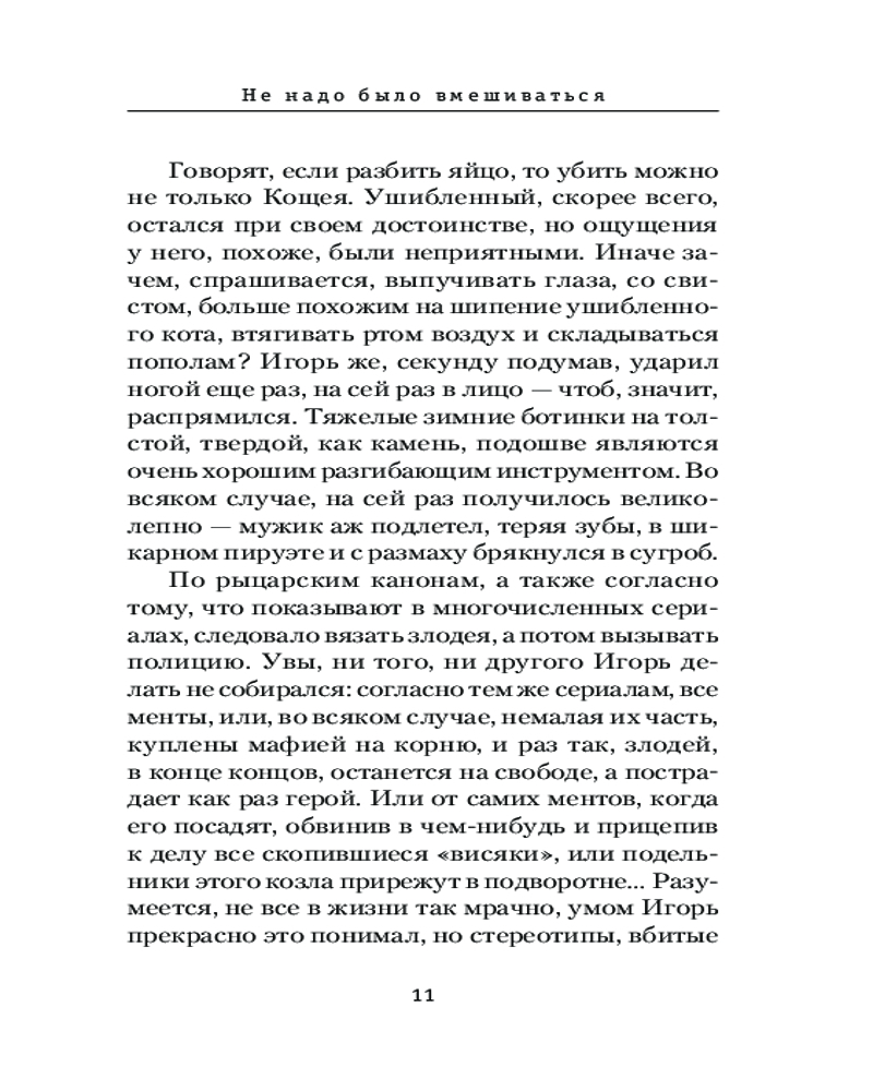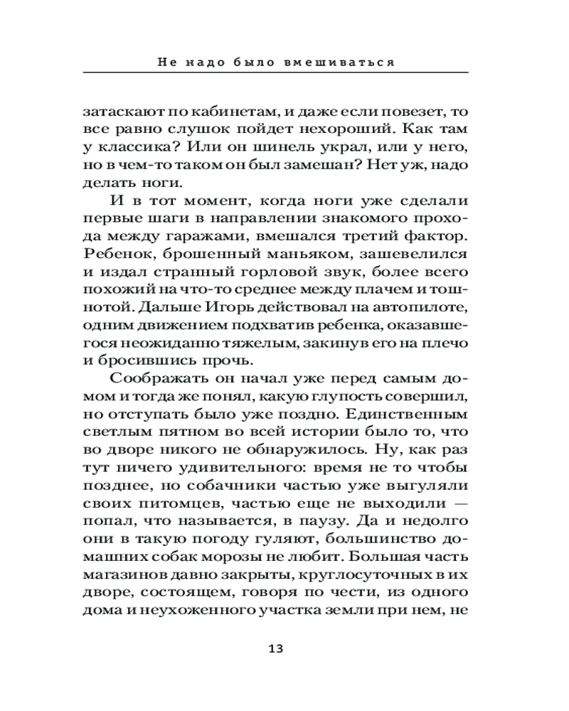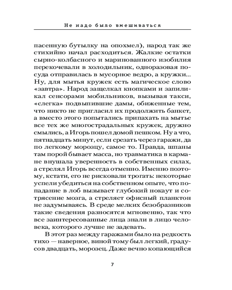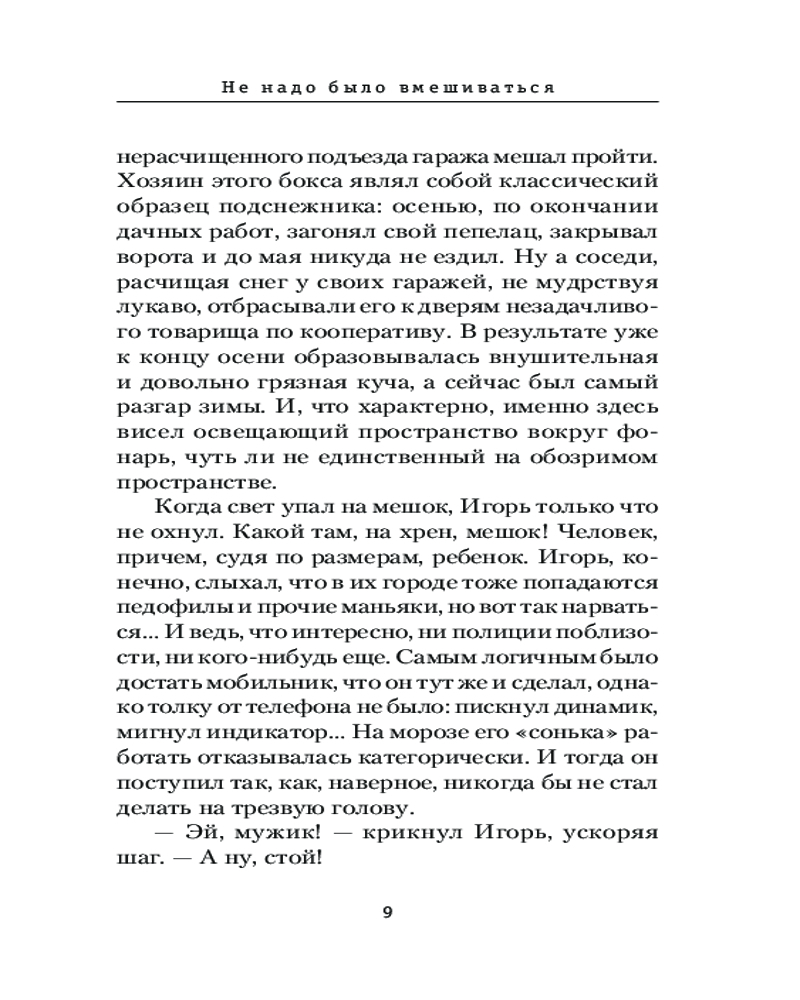 Не надо было вмешиватьсяВ данный момент этот товар отсутствует в продаже. Возможно, у нас найдется аналогичный или похожий товар здесь. Серия: Призвание — Сыщик! Лучшие детективы Если на ваших глазах кого-то убивают, не вмешивайтесь, проходите мимо. Ну а если вмешались, будьте готовы к неприятностям. Если же замешана еще и женщина, то неприятности будут крупные. Не испугались? Ну и правильно. Потому что даже в жизни офисного планктона должно быть место подвигу. |