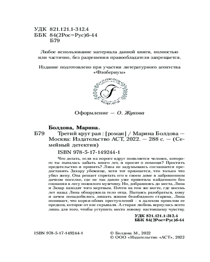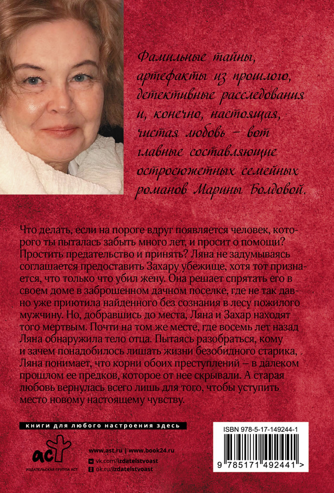 Третий круг раяВ данный момент этот товар отсутствует в продаже. Возможно, у нас найдется аналогичный или похожий товар здесь. Серия: Семейный детектив Что делать, если на пороге вдруг появляется человек, которого ты пыталась забыть много лет, и просит о помощи? Простить предательство и принять? Ляна не задумываясь соглашается предоставить Захару убежище, хотя тот признается, что только что убил жену. Она решает спрятать его в своем доме в заброшенном дачном поселке, где не так давно уже приютила найденного без сознания в лесу пожилого мужчину. Но, добравшись до места, Ляна и Захар находят того мертвым. Почти на том же месте, где восемь лет назад Ляна обнаружила тело отца. Пытаясь разобраться, кому и зачем понадобилось лишать жизни безобидного старика, Ляна понимает, что корни обоих преступлений — в далеком прошлом ее предков, которое от нее скрывали. А старая любовь вернулась всего лишь для того, чтобы уступить место новому настоящему чувству. |