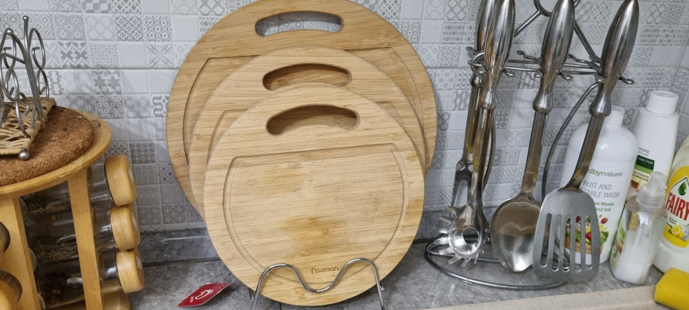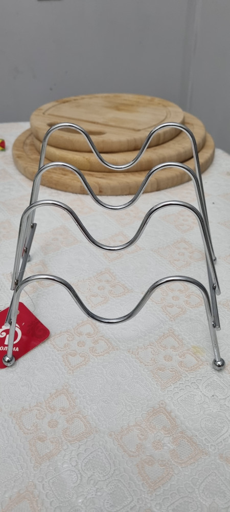 Взяла как подставку для деревянных досок. Даже самые большие держатся хорошо, устойчиво. И сохнут быстро, и на кухне порядок.