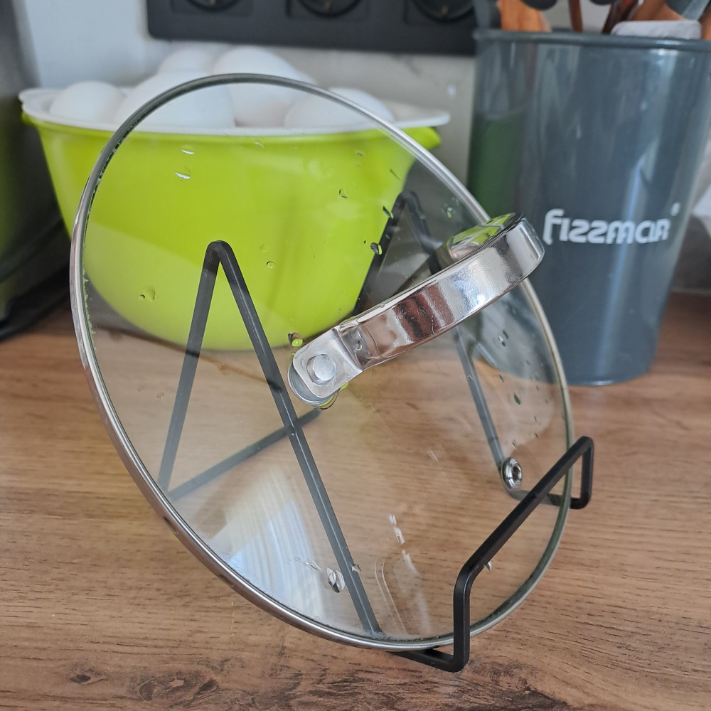 Немного меньше, чем ожидала. Но устойчивая, стильная, крышку хорошо держит. Когда готовишь, удобно поставить крышку. В целом все устраивает.
