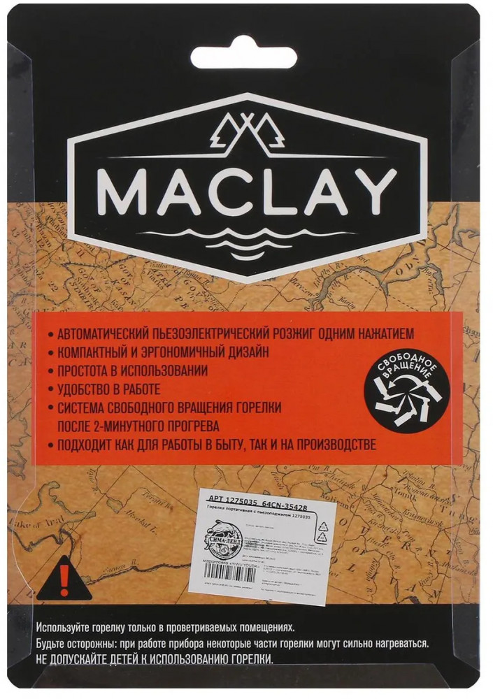 Maclay Горелка газовая с пьезоподжигом-40% +78 пьеза