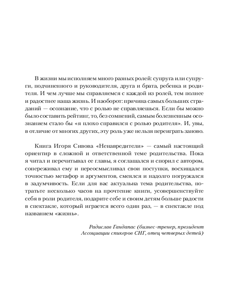 Отзыв Радислава Гандапаса (бизнес-тренер, президент Ассоциации спикеров СНГ, отец четверых детей):