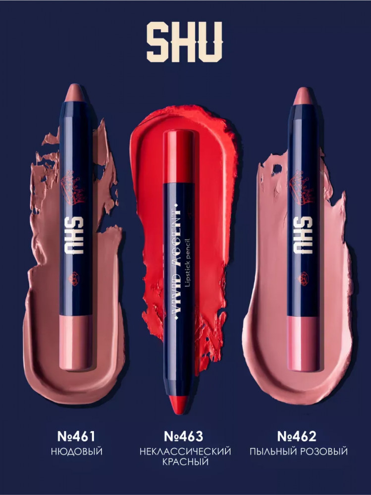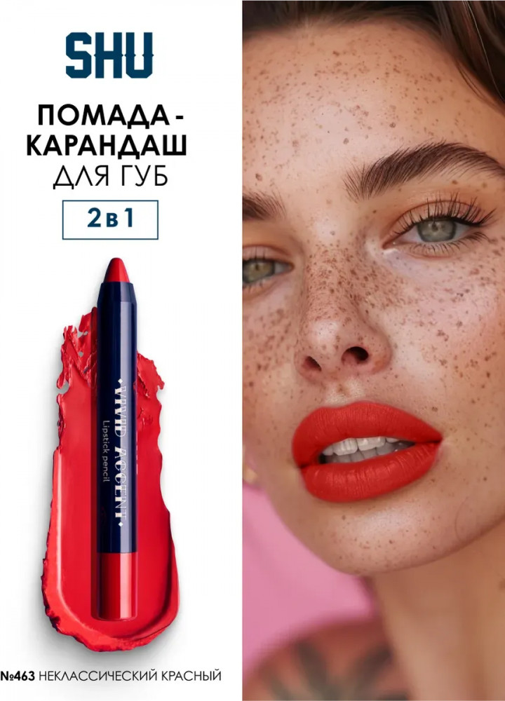 SHU Помада-карандаш «Vivid Accent», тон 463 Неклассический красный