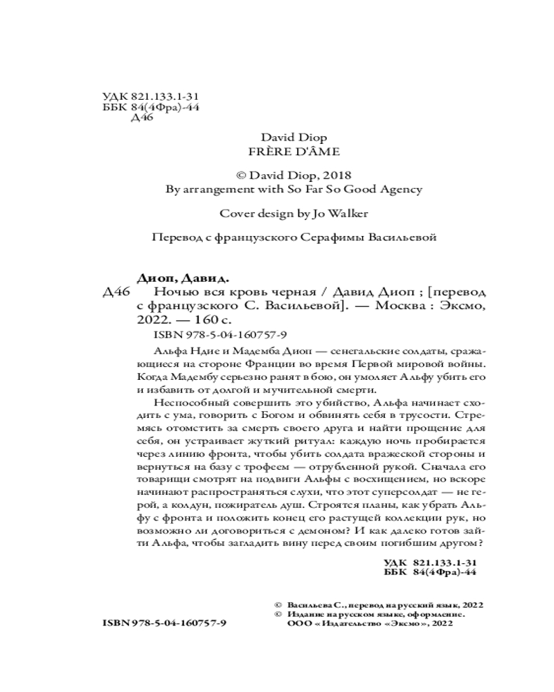 | Ночью вся кровь черная Давид Диоп