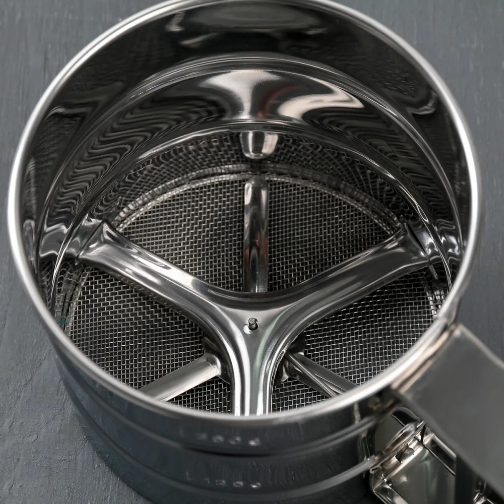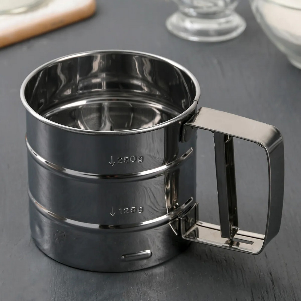 Доляна Просеиватель для мукиВ данный момент этот товар отсутствует в продаже. Возможно, у нас найдется аналогичный или похожий товар здесь. Кружка-сито для просеивания муки, сахарной пудры, манки и других сыпучих продуктов идеальный современный помощник на любой кухне! Благодаря сито кружке просеивать муку перед запеканием выпечки станет еще быстрее и удобнее, так как металлическое сито имеет удобную механическую ручку, нажав на которую вы вращаете лопасти внутри ситечко и тем самым просеиваете муку или другой сыпучий продукт. |